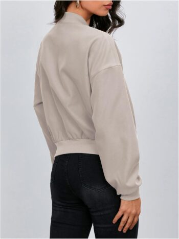 Women Bomber Jacket Coat Casual Stand Collar Zip Up Lightweight Fall Fashion Jackets Outfits with Pockets