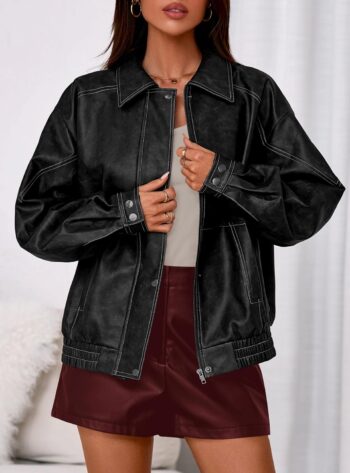 Faux Leather Jacket Women Bomber Motorcycle Zip Up Jackets d Fall Fashion Outfits Winter Coats