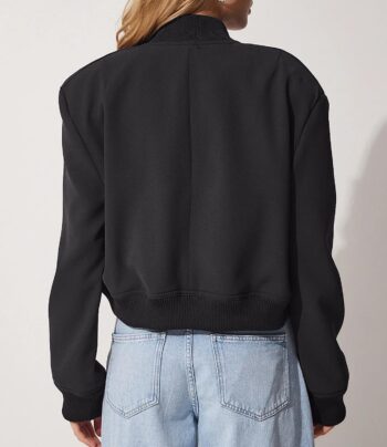 Women Spring Varsity Bomber Jackets Long Sleeve Cropped Button Down Casual Coat with Pockets Outwear
