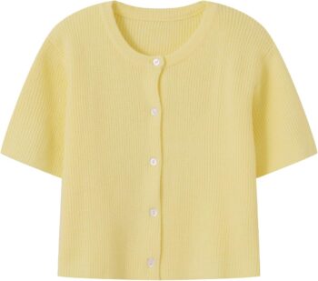 Women Y2k Knitted Crop Cardigan Short Sleeve Button Up Rib Knit Solid Color Cute Sweater Shirt