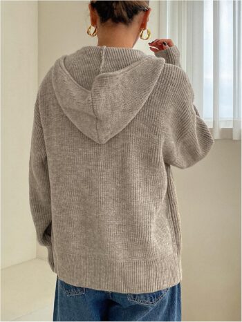 Women Zip Up Hooded Cardigan Sweater Knitted Drop Shoulder Fall Hoodies Outerwear