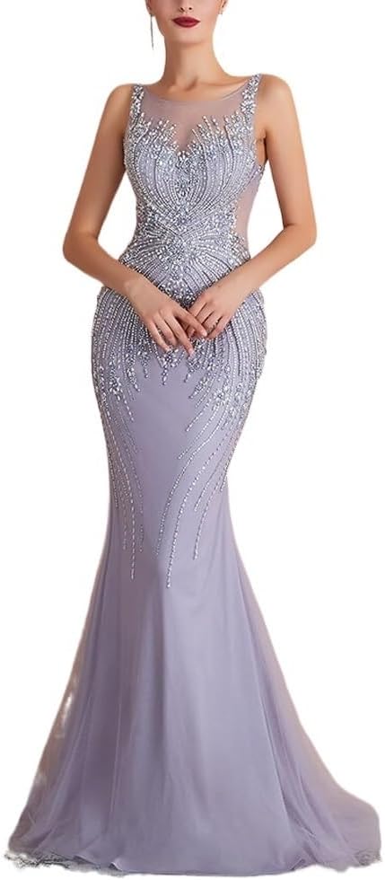 Beadings Long Evening Dress Sexy Illusion Mermaid Crystals Party Gowns