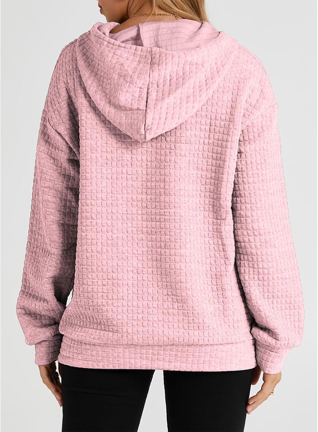 Hoodies For Women Casual Pullover Waffle Long Sleeve Drawstring Hooded Sweatshirt with Pocket