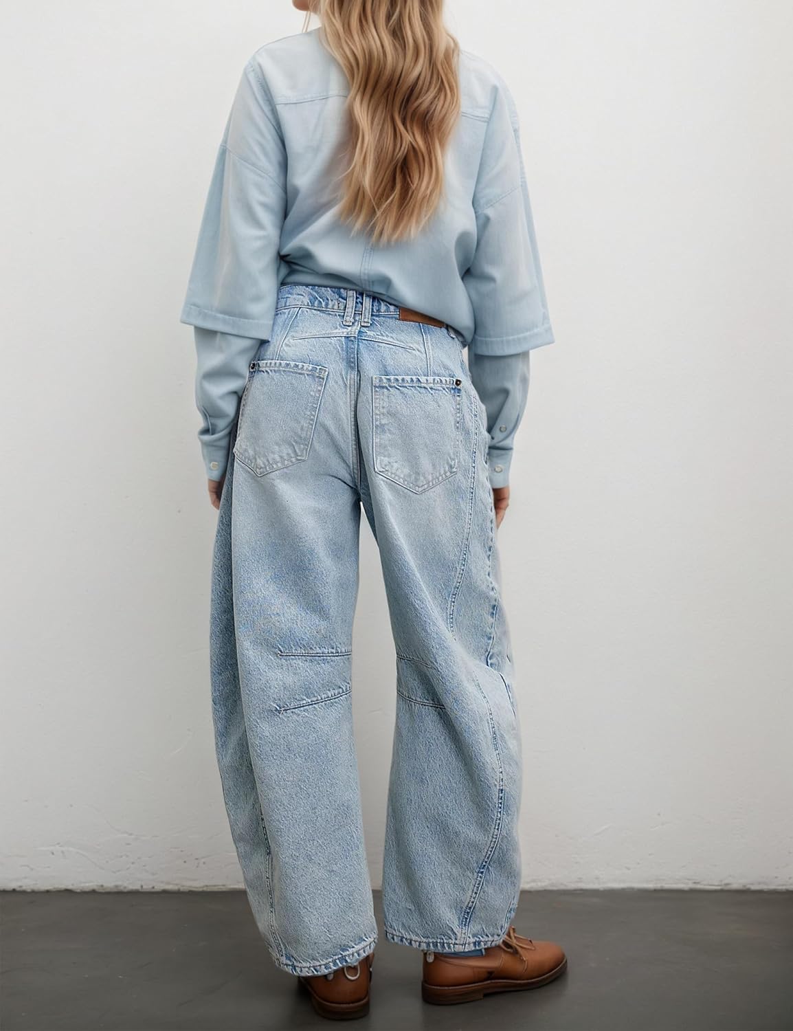• Vintage Barrel Silhouette: Features a unique wide leg that tapers subtly towards the ankle, creating a modern, retro-inspired shape that flatters all body types