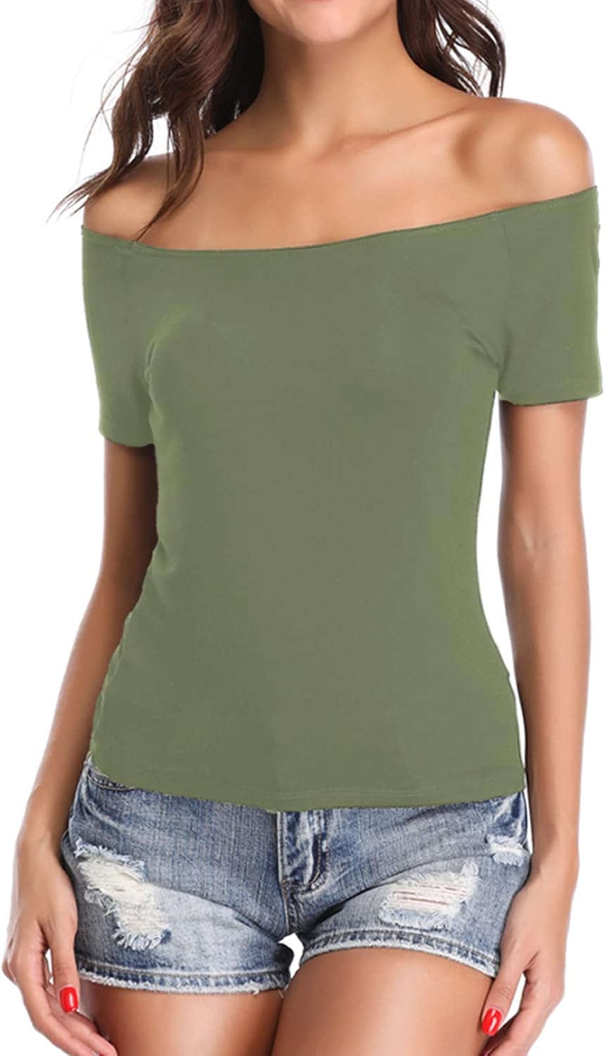 Women Off Shoulder Tops, One Shoulder Shirts, Short Sleeves Sexy Slim Fit Tees