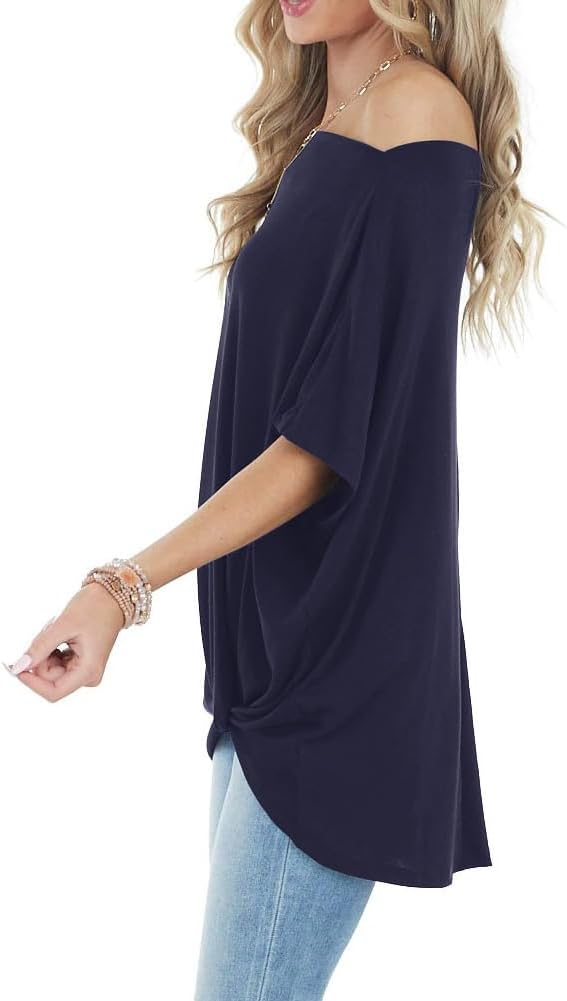 • Features: Off the shoulder tops, Front twist Knot T-shirt, Batwing sleeve Tunic, Irregular shirt, Solid color Shirt, Short dolman sleeves, Loose fit Blouse, Summer Top, Short sleeve Tee, Breathable and stretchy fabric, High quality